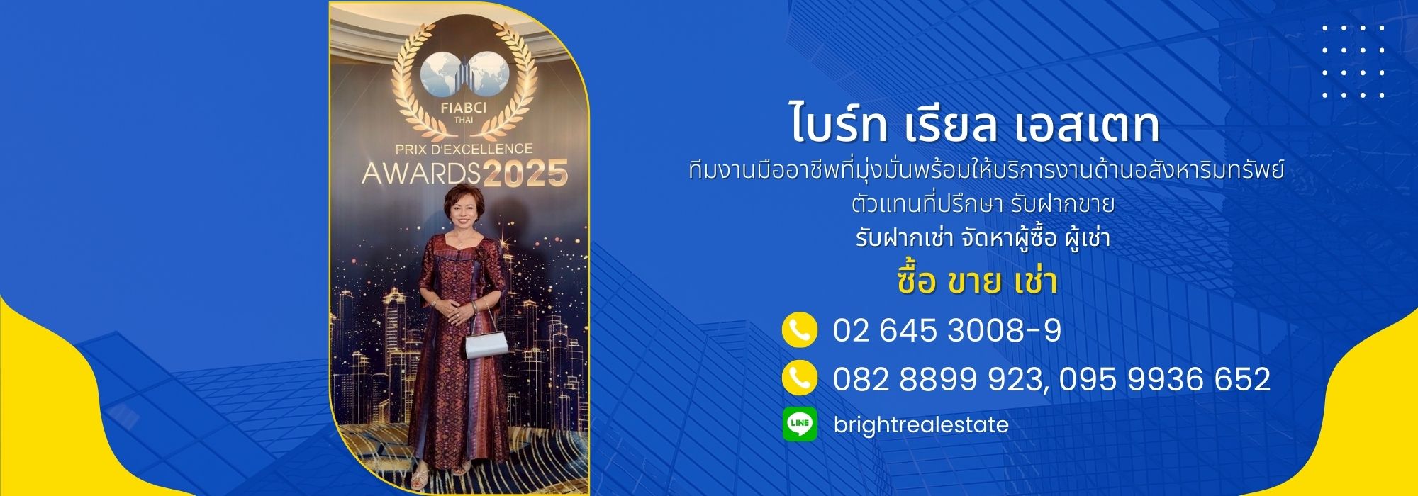 การเลือกทำงานกับไบรท์ เรียล เอสเตท ที่มีเอเจนท์มืออาชีพ เป็นการเริ่มต้นที่จะช่วยให้ประสบความสำเร็จ !!!ได้อย่างรวดเร็วและได้ราคาตรงตามต้องการขายและเช่า